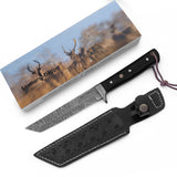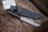 🗡️ Hand-Forged Damascus Tanto Hunting Knife – Full Tang with Leather Sheath