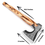 This axe is hand forged by using 1095 high carbon steel. Impressive work is done on the head and handle. This axe is lab tested for intense work. Hardness is 58-60 HRC on Rockwell Scale. The style/shape and balance are designed for a perfect grip in your hands.