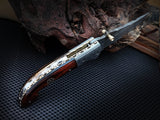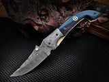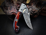 Folding Pocket Knife Walnut Wood with Damascus Bolster Drop Point Mosaic Pin Custom Handcrafted Damascus Steel 7.75 inches with Leather Sheath CLKFOL1120