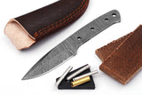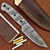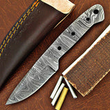 - NOTA: Esta es nuestra foto de archivo. Recibirás un patrón de Damasco diferente ya que cada Hoja de Damasco es única en el mundo. La funda de cuero y la escala también pueden ser diferentes. Los agujeros en el mango pueden ser de diámetro pequeño o grande y se pueden encontrar en diferentes lugares del mango (no es necesario usar todos los agujeros para hacer un cuchillo). Los pasadores pueden ser más grandes, pero puedes frotarlos con papel de lija para ajustarlos según los orificios del mango.