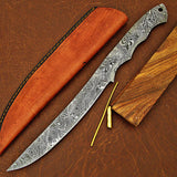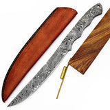 - NOTA: Esta es nuestra foto de archivo. Recibirás un patrón de Damasco diferente ya que cada Hoja de Damasco es única en el mundo. La funda de cuero y la escala también pueden ser diferentes. Los agujeros en el mango pueden ser de diámetro pequeño o grande y se pueden encontrar en diferentes lugares del mango (no es necesario usar todos los agujeros para hacer un cuchillo). Los pasadores pueden ser más grandes, pero puedes frotarlos con papel de lija para ajustarlos según los orificios del mango.