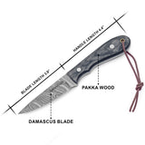 Crafted with 156 true layers of 4340 & 1060 Damascus steel, the 4.00" sabre grind blade offers razor-sharp precision with exceptional durability. The full tang construction ensures superior strength, while the ergonomic Pakka wood handle delivers a secure, comfortable grip—even in rugged conditions.