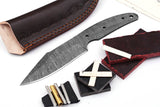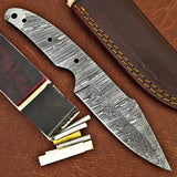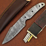 - NOTE: This is our stock photo. You will receive different Damascus pattern as every Damascus Blade is unique in the world. Leather sheath and scale may be different too. The holes in the handle can be small or big in diameter and can be found at different places on the handle (you don’t need to use all holes to make a knife). Pins may be bigger but you can rub them with sandpaper to adjust according to handle holes.