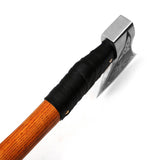 This axe is hand forged by using 1095 high carbon steel. Impressive work is done on the head and handle. This axe is lab tested for intense work. Hardness is 58-60 HRC on Rockwell Scale. The style/shape and balance are designed for a perfect grip in your hands.